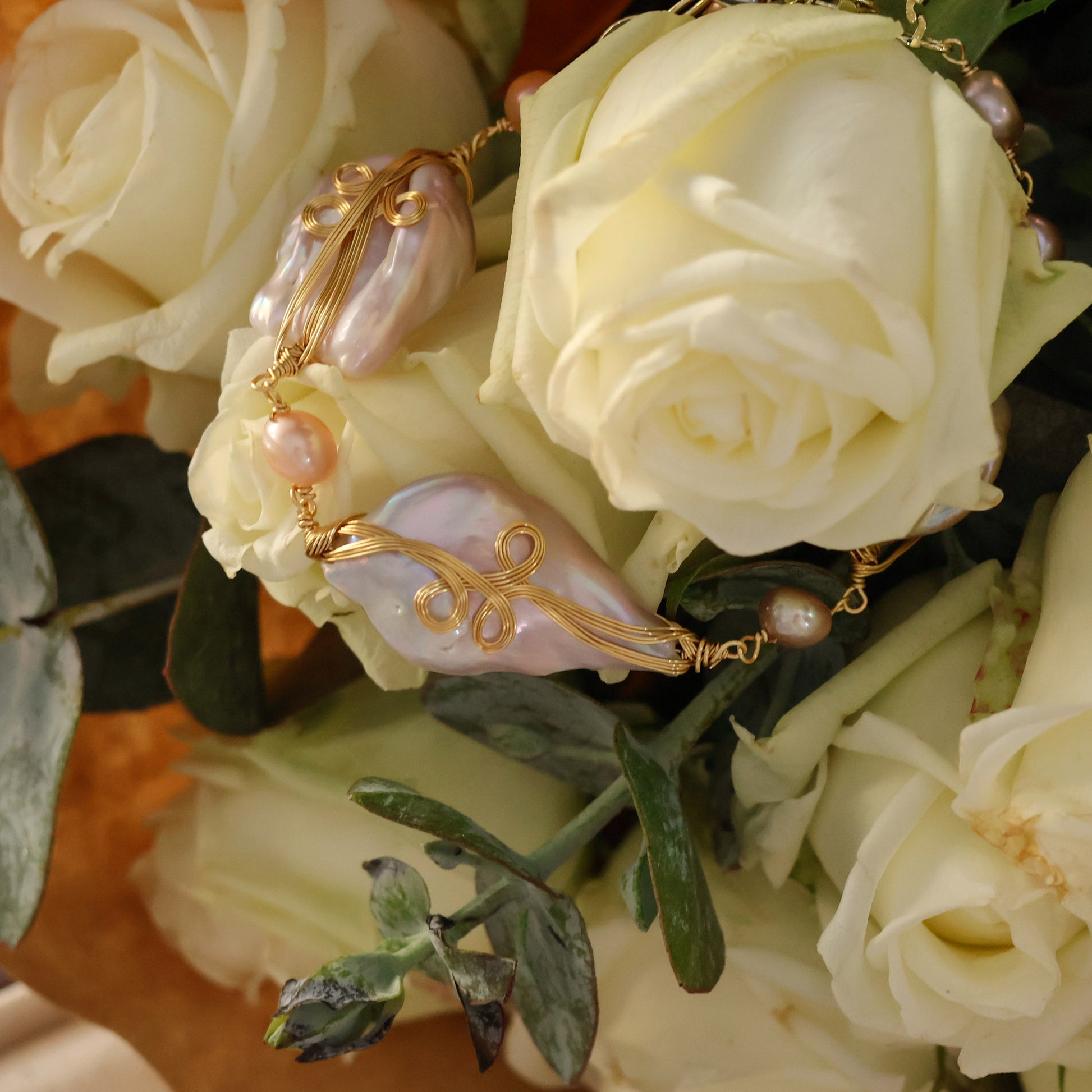 Expertly connected with meticulous wire wrapping details, this bracelet is a fusion of craftsmanship and nature's artistry. The irregularities of each baroque pearl are embraced, creating a distinct and one-of-a-kind accessory.
