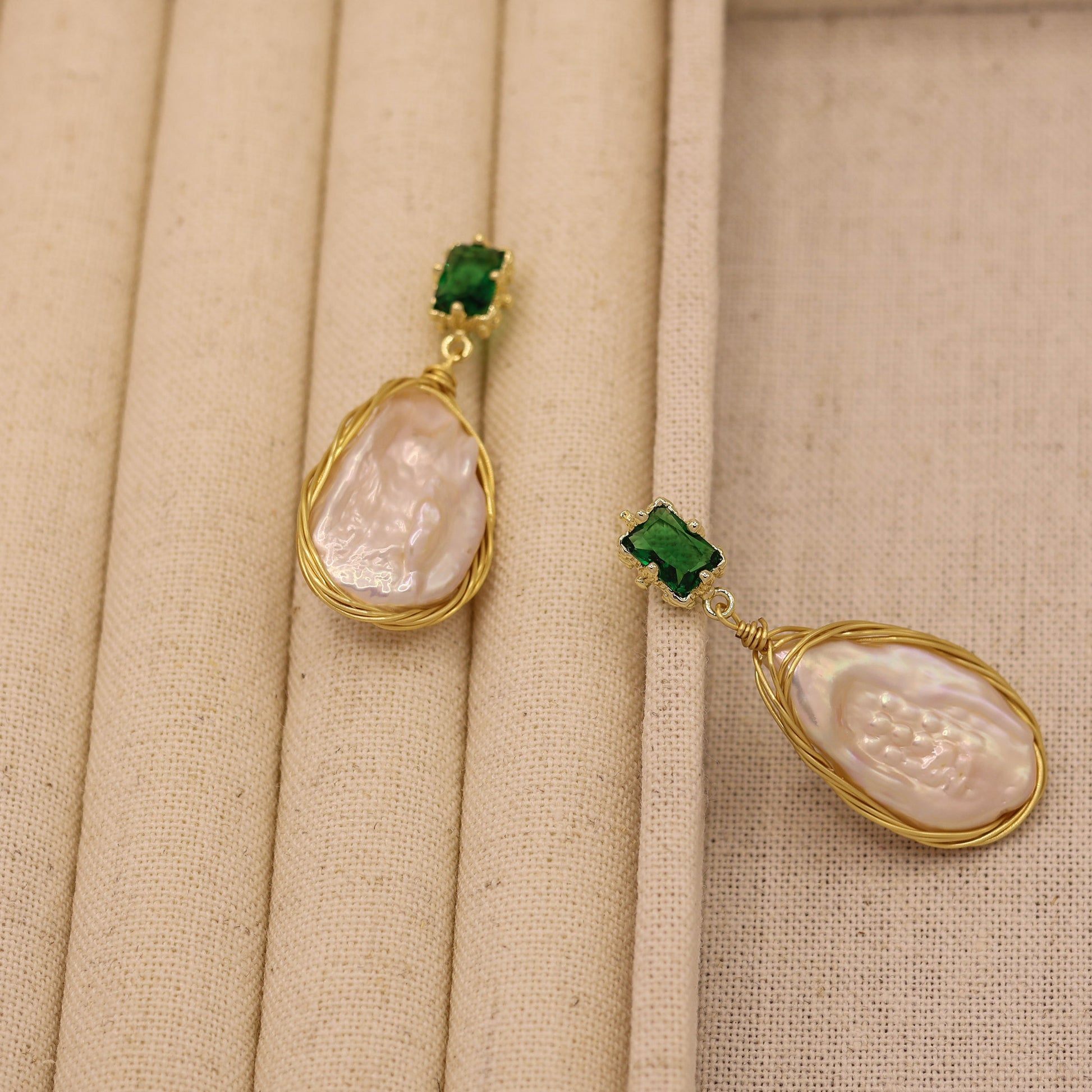 Indulge in the allure of handcrafted luxury with our Verde Gem Harmony Earrings. Meticulously designed and handmade, these earrings feature high-quality, naturally formed baroque pearls and exquisite Emerald Zircons. Elevate your style with the unique and elegant touch that these artisanal creations bring to any outfit.