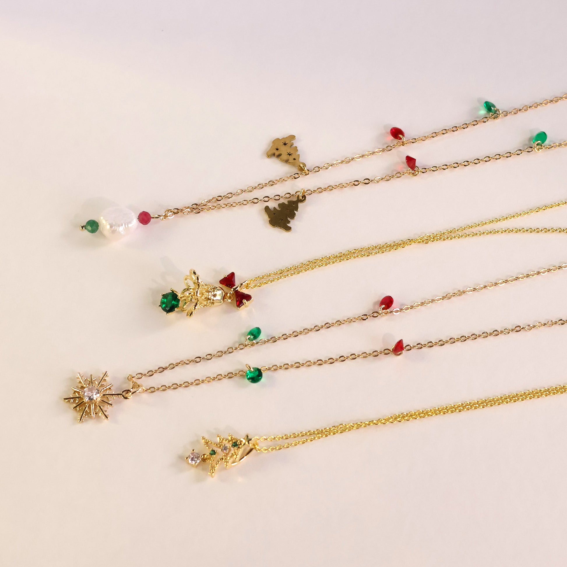 Christmas Tree🎄 Gold Plated Necklace with Cubic Zirconia