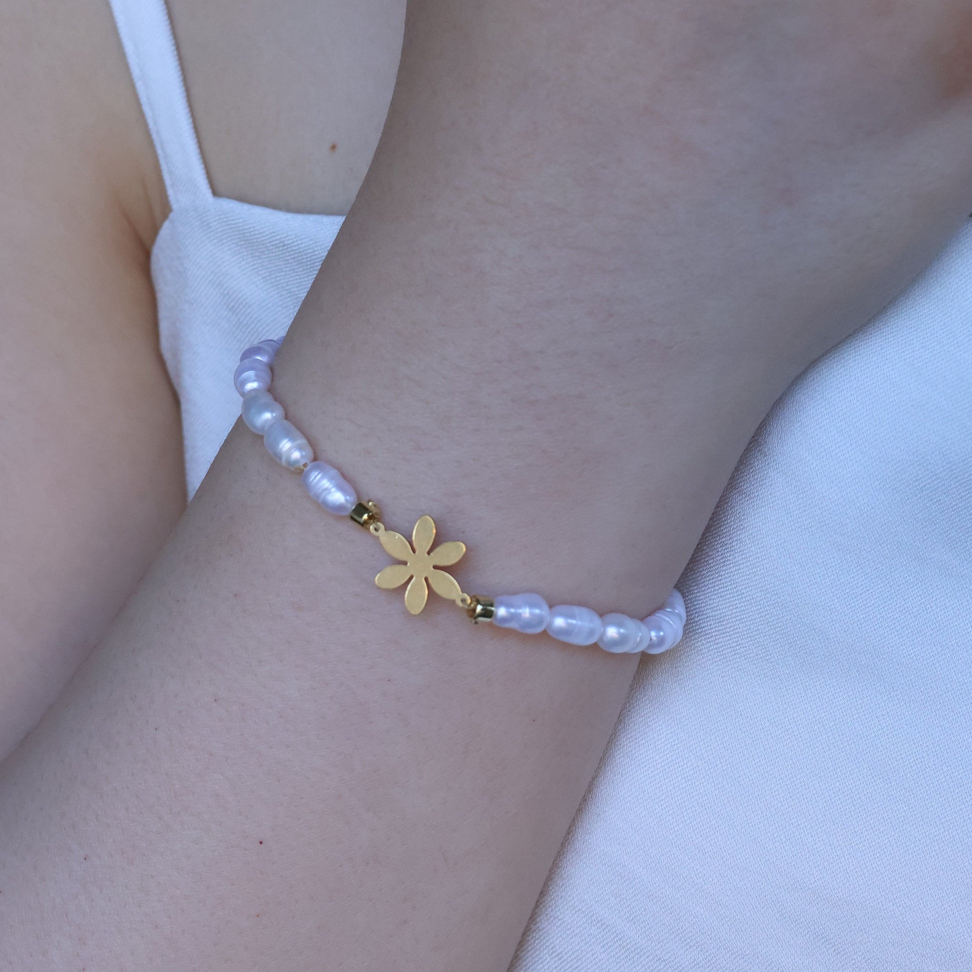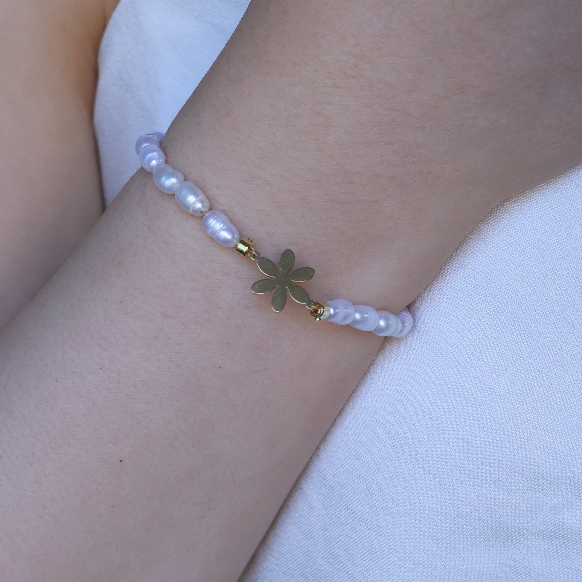 Flower Charm Freshwater Pearl Bracelet