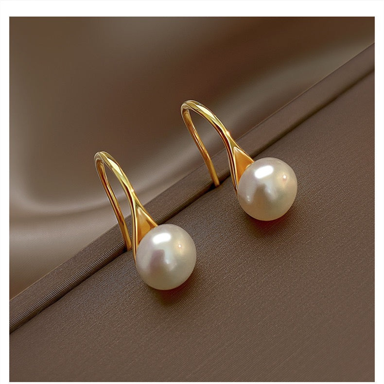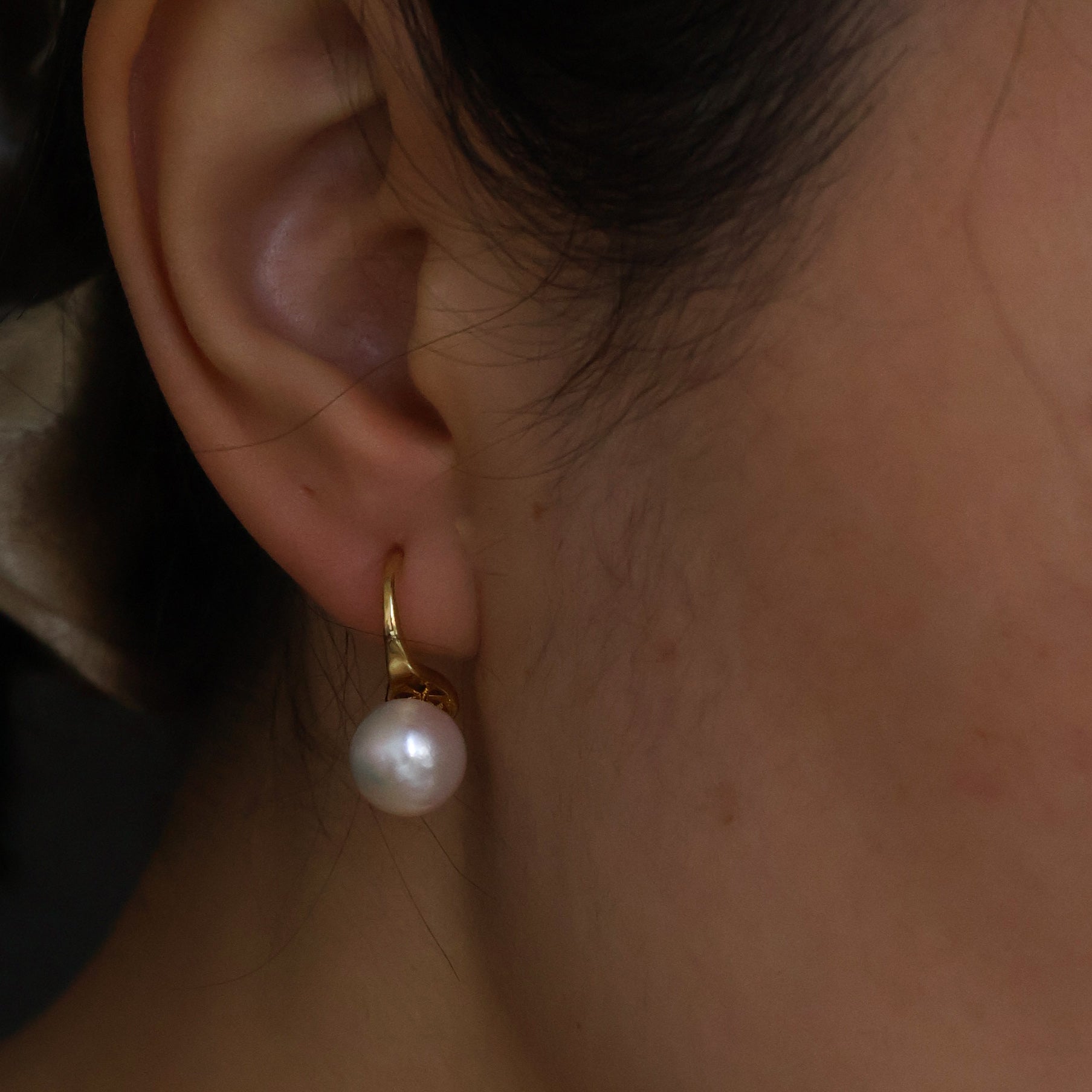 - Model is wearing Lili earrings with 1 cm pearl