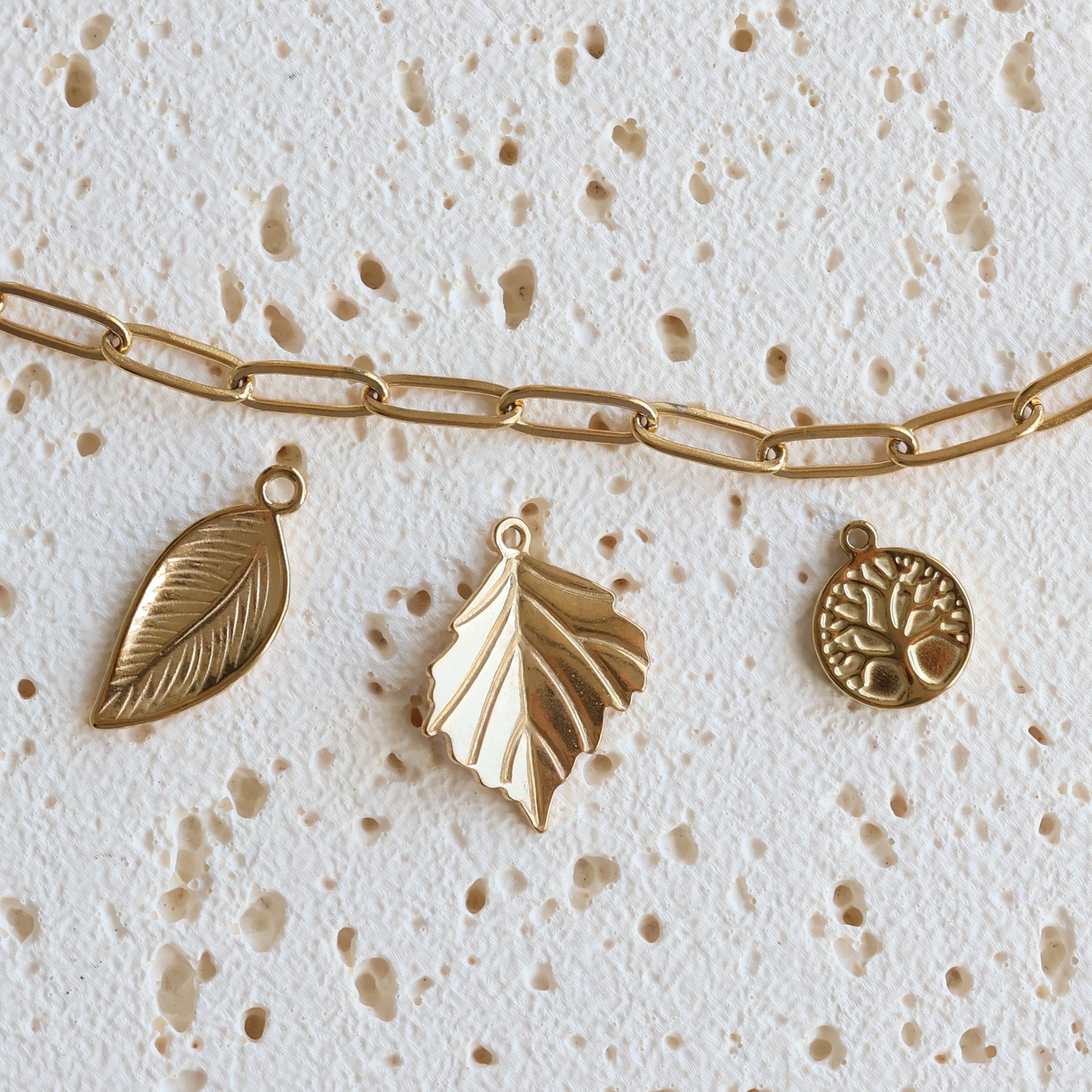 Embrace the beauty of nature with these real gold-plated stainless steel leaf and tree charms. Designed with intricate detailing and a timeless organic aesthetic, these charms are perfect for DIY jewellery making, including charm bracelets, necklaces, and earrings. Crafted from stainless steel, they are tarnish-resistant, waterproof, and hypoallergenic, making them ideal for everyday wear.