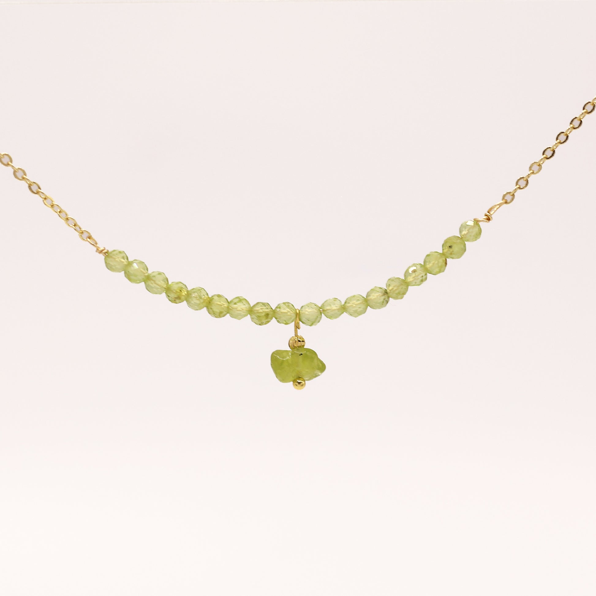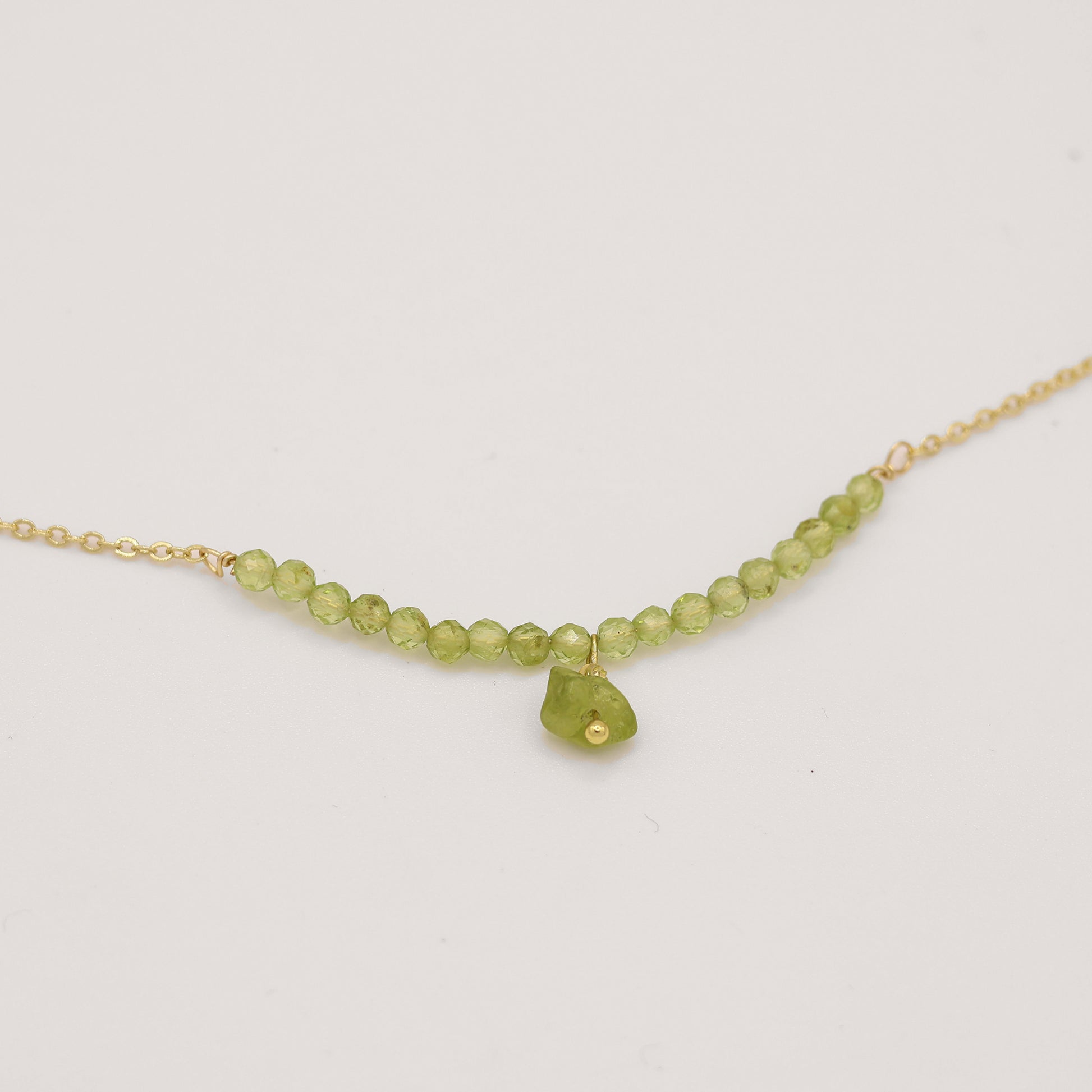 Introducing our new design Peridot Dream — a truly unique and originally designed handmade necklace that seamlessly blends nature's allure with timeless elegance. Meticulously crafted, each piece features lustrous Peridot quartz (August birthstone) suspended on a delicate gold-plated chain, creating a harmonious fusion of natural beauty and sophistication.
