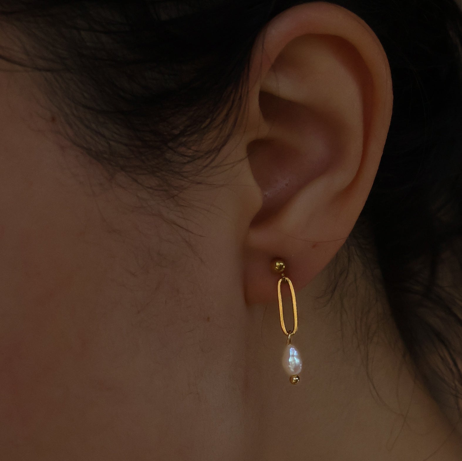 Paper clip pearl earrings gold plated