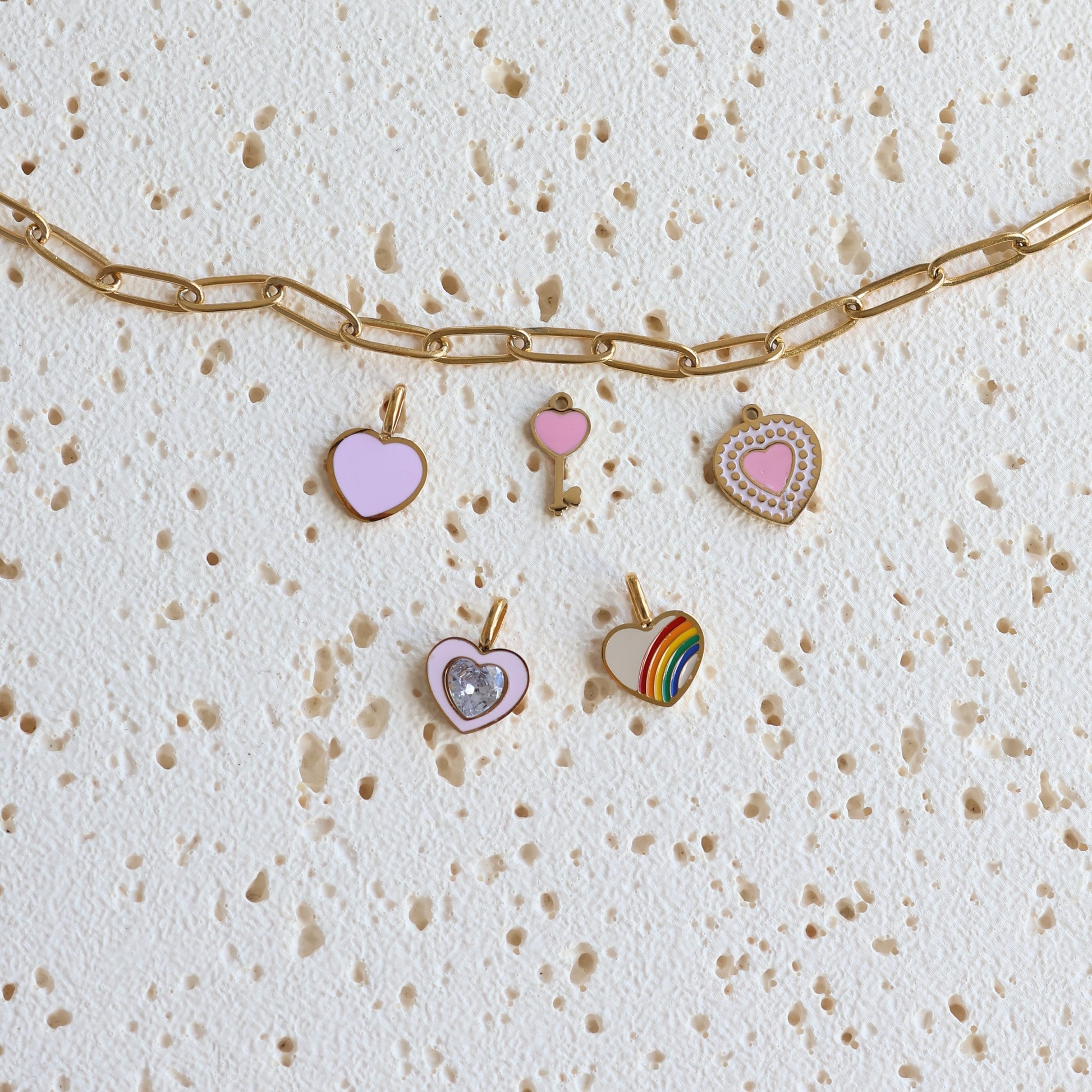 Add a sweet and playful touch to your jewellery with these Pastel Love & Rainbow Charms, crafted from real gold-plated stainless steel. Featuring soft enamel hearts, keys, and rainbows, these charms bring a fun and meaningful accent to necklaces, charm bracelets, and DIY jewellery projects. Whether you're looking for a symbol of love, positivity, or a dreamy aesthetic, these charms are perfect for everyday wear and thoughtful gifts.