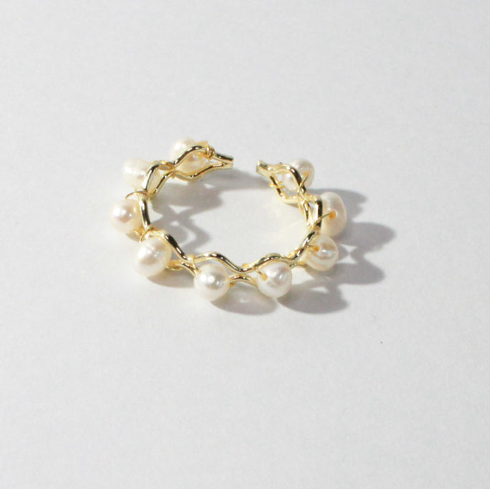 Freshwater pearl open ring with irregular gold band