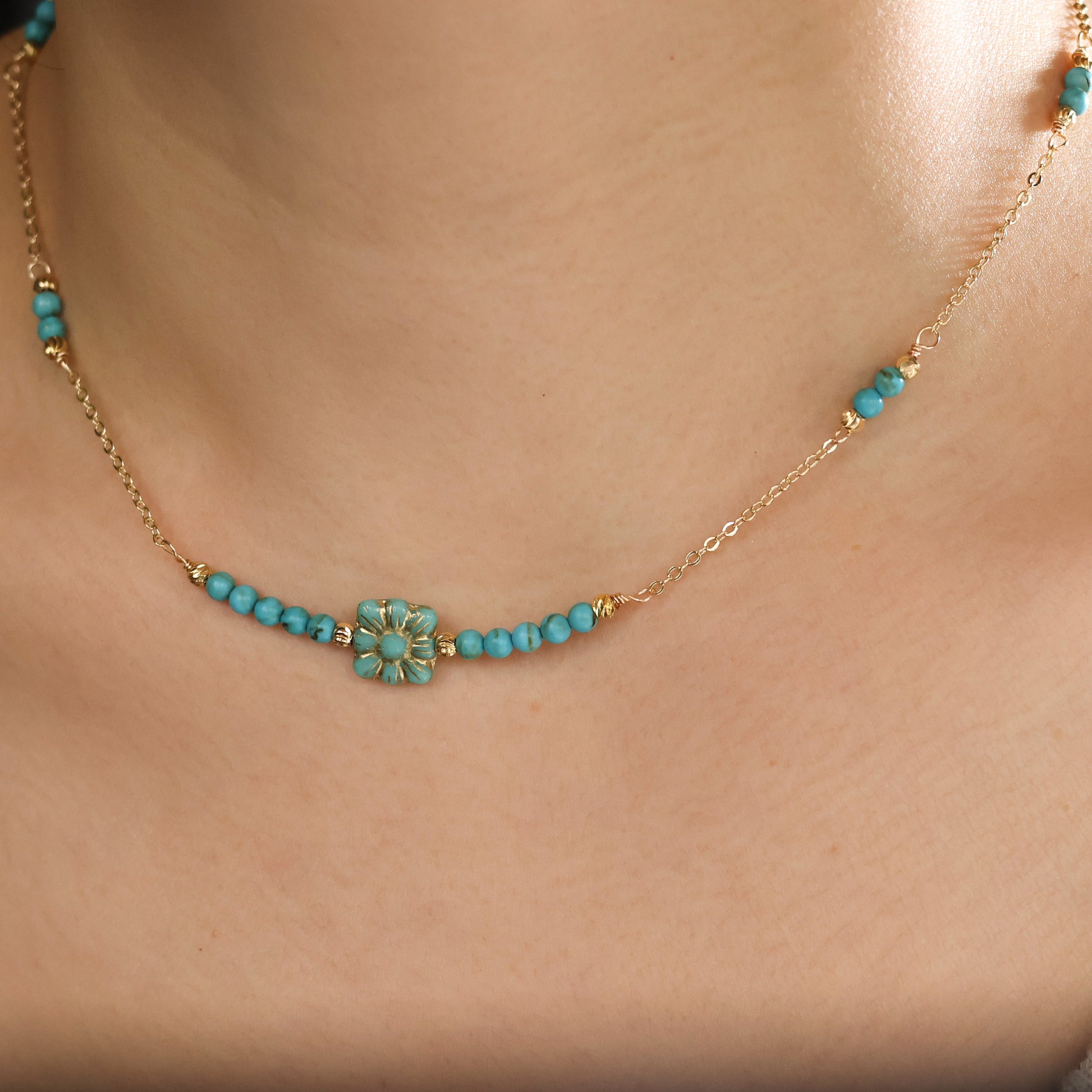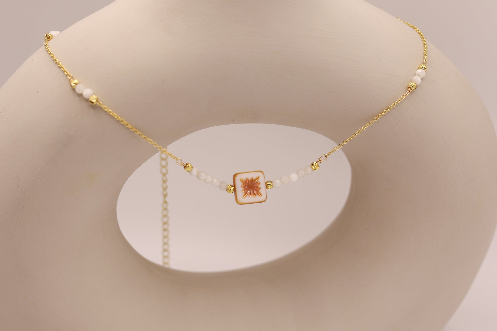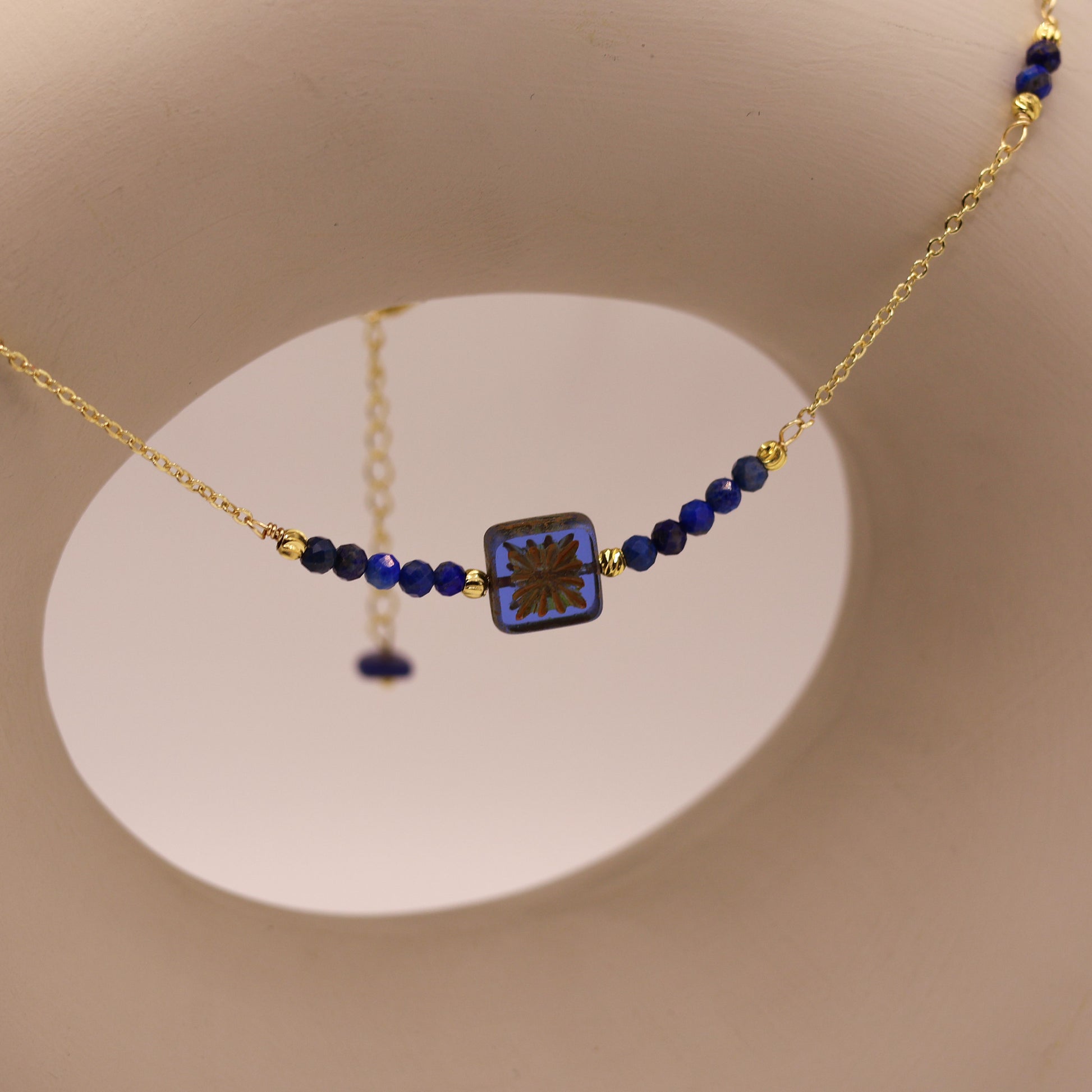 Embrace the essence of Czech summer with our handmade necklace featuring vintage Czech beads and natural stones, originally designed and handcrafted for uniqueness.