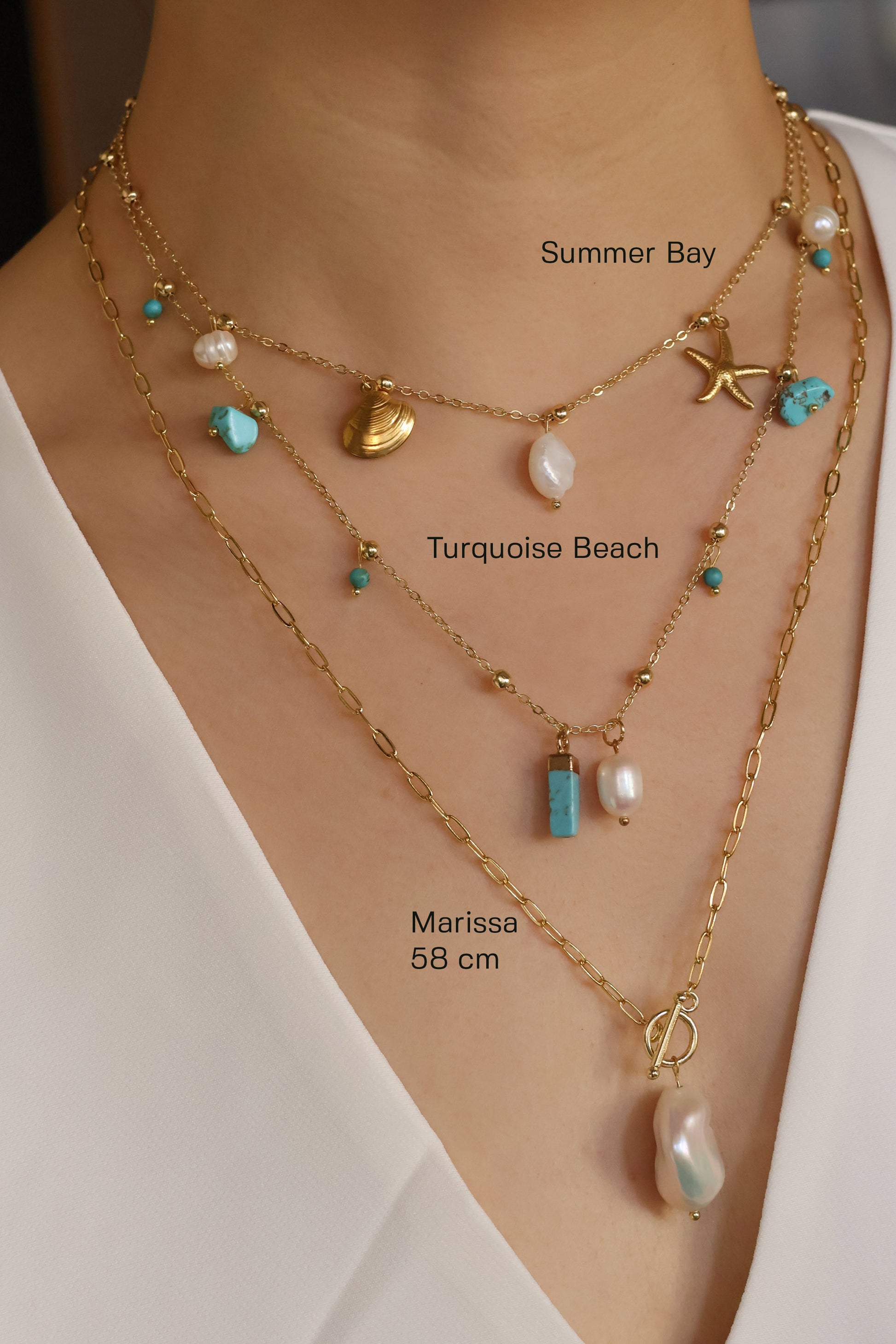 Turquoise beach handmade necklace with natural turquoise stone and freshwater pearl